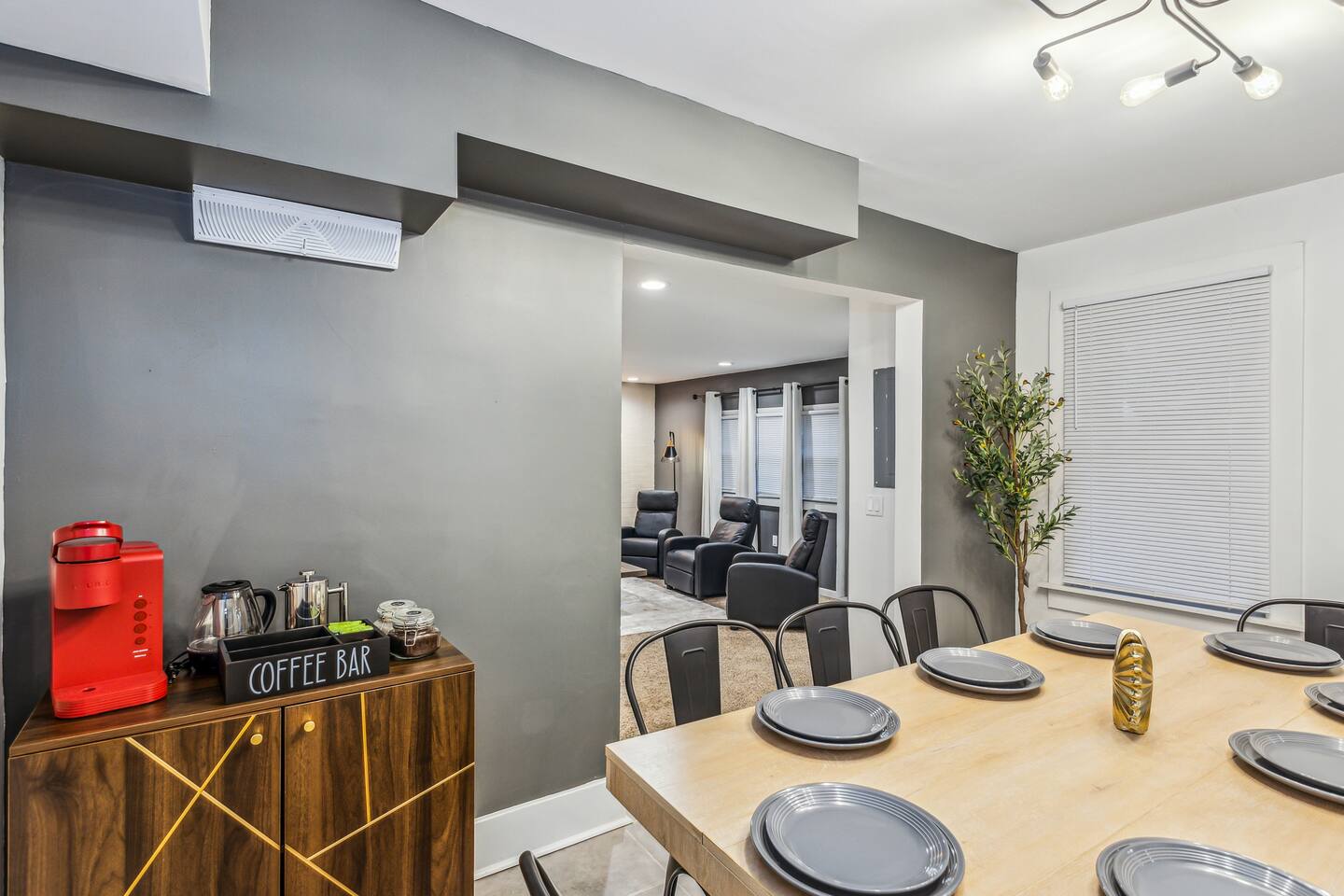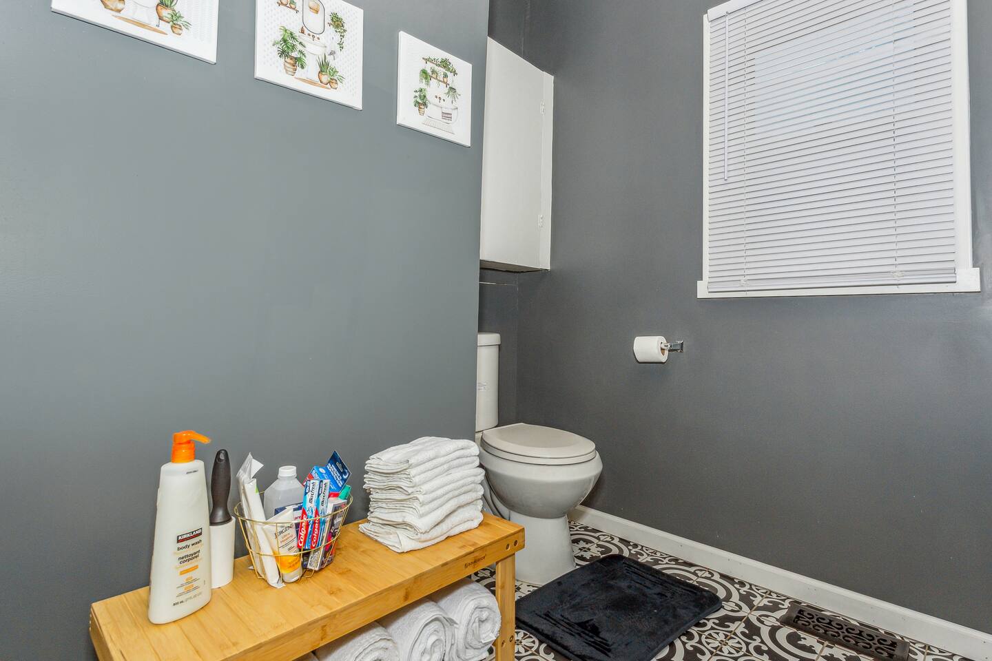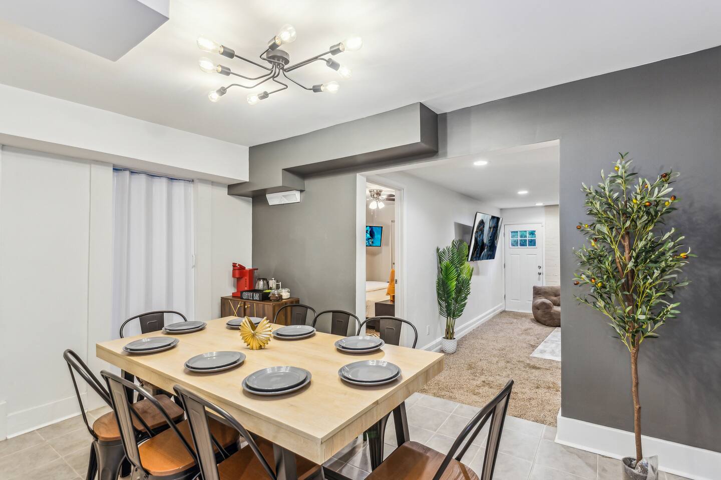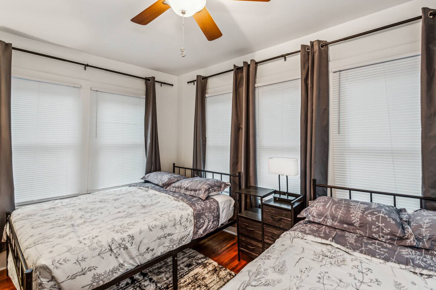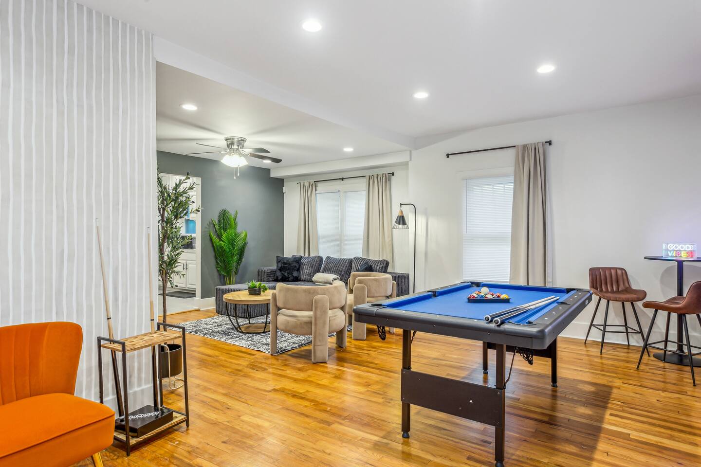 This charming 1922 Airplane Bungalow sits in the heart of the city and still has its original hardwood floors. It was recently renovated with some modern touches! It’s a 3-bedroom, 1-bath home with a unique layout. Just like classic bungalows, the third bedroom is the only room upstairs! PLEASE LEARN ABOUT PARKING AT OUR PROPERTY. CONTACT ME IF YOU HAVE ANY QUESTIONS! 🛏 Bedrooms Main Bedroom • King bed, sleeps 2 • 43" Smart TV • Blackout blinds and mirror Second Bedroom • Queen bed • 43" TV with adjustable mount Third Bedroom • Two full size beds • Great for kids and families 🛋 Living Spaces • Cozy living room with 55" TV • Sectional couch with plenty of seating • Dining table for 8 • Pool table 🍳 Kitchen • Fully stocked with cookware and utensils • Coffee station: Keurig, French press, kettle • Cooking basics: oil, salt, etc. 🎬 Movie Room • Theater-style seats + bean bags • 65" TV and surround sound 🌿 Backyard • Fire pit, chairs and games 🚗 Parking & Security • Driveway fits 2 cars • Ring doorbell camera This property allows parking for up to 3 vehicles. The driveway can fit 2 regular size cars, and 1 may be parked at the curbside. There is no garage on the property. Please note that the street is narrow, and larger vehicles such as trailers or oversized trucks are difficult to accommodate as they may block neighbors’ spaces.