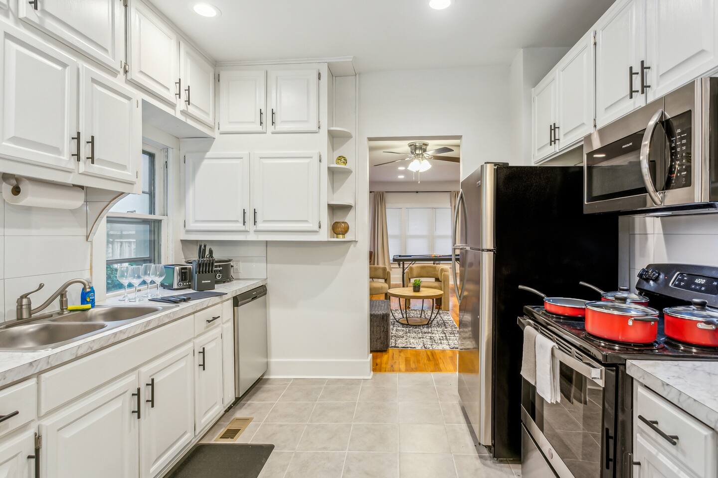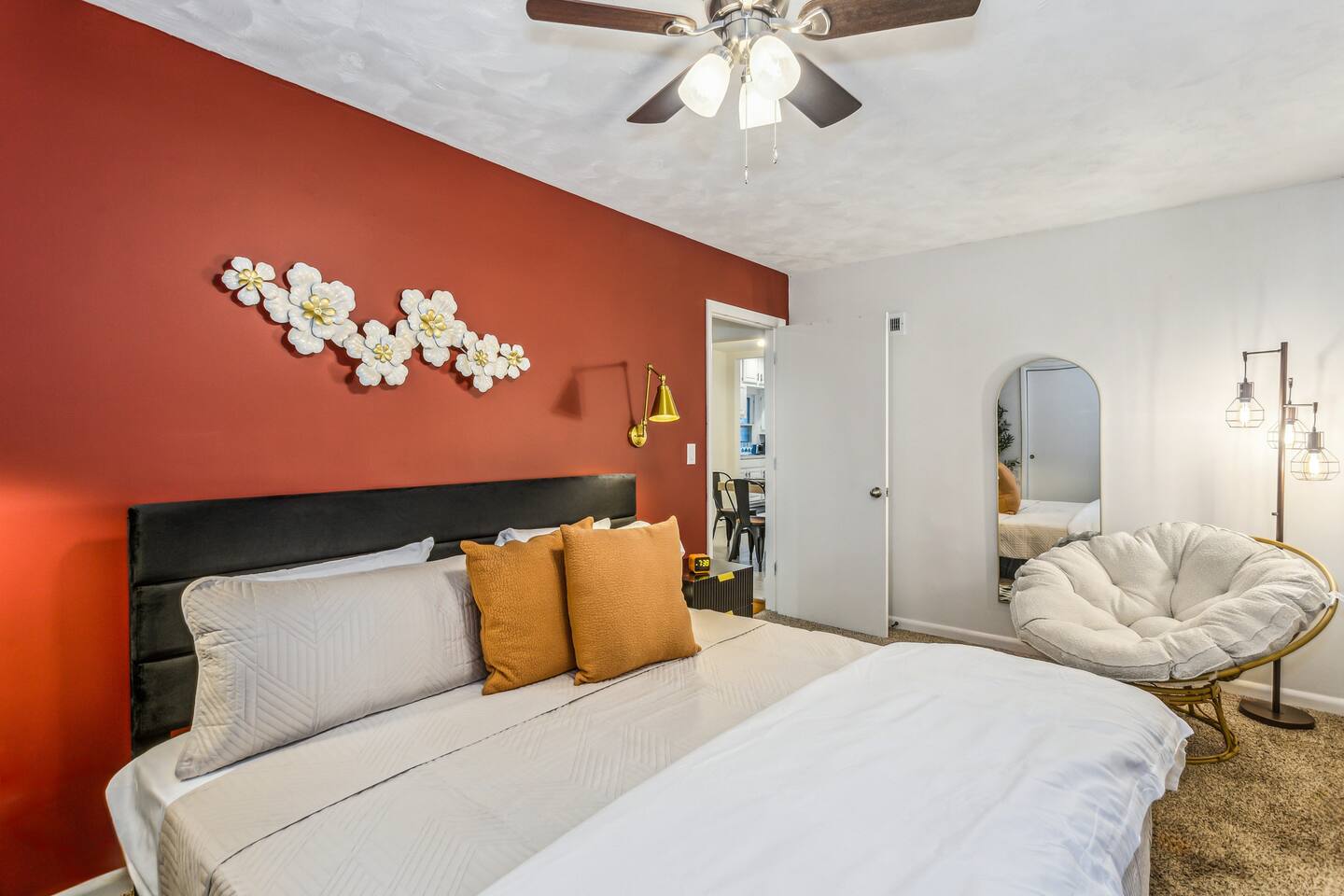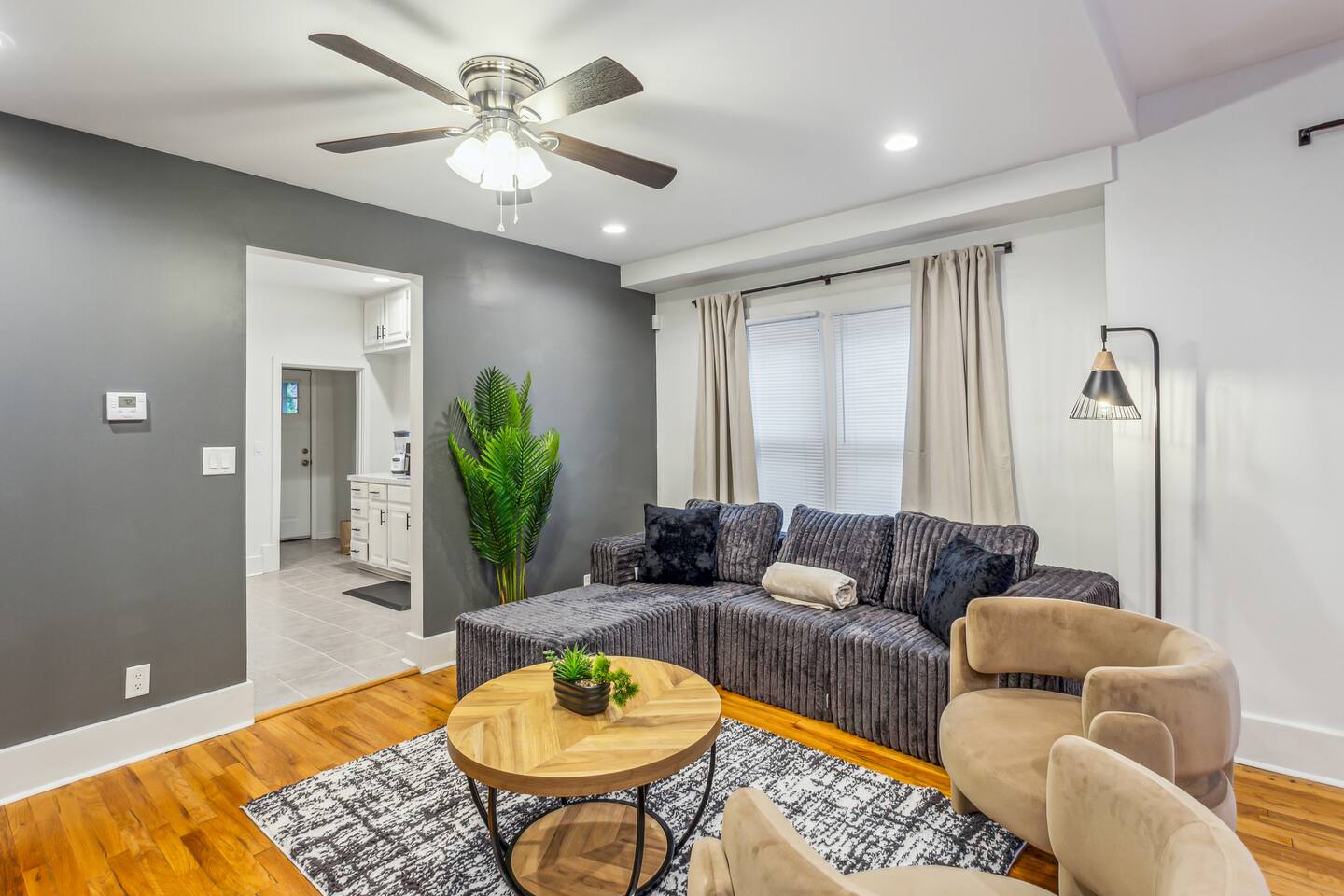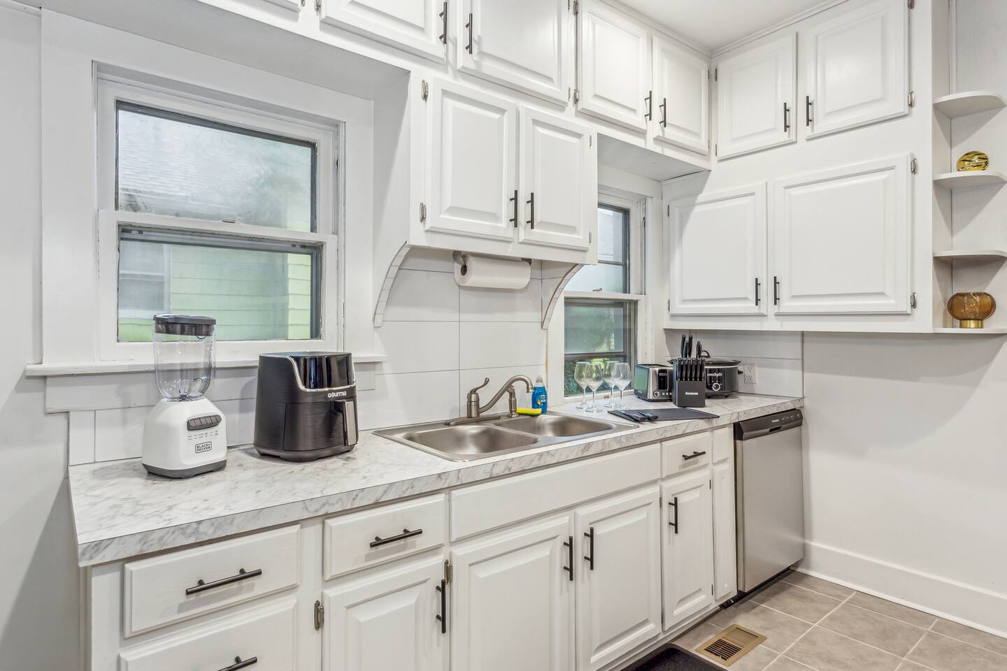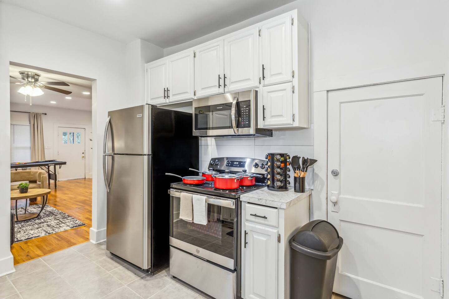 This charming 1922 Airplane Bungalow sits in the heart of the city and still has its original hardwood floors. It was recently renovated with some modern touches! It’s a 3-bedroom, 1-bath home with a unique layout. Just like classic bungalows, the third bedroom is the only room upstairs! PLEASE LEARN ABOUT PARKING AT OUR PROPERTY. CONTACT ME IF YOU HAVE ANY QUESTIONS! 🛏 Bedrooms Main Bedroom • King bed, sleeps 2 • 43" Smart TV • Blackout blinds and mirror Second Bedroom • Queen bed • 43" TV with adjustable mount Third Bedroom • Two full size beds • Great for kids and families 🛋 Living Spaces • Cozy living room with 55" TV • Sectional couch with plenty of seating • Dining table for 8 • Pool table 🍳 Kitchen • Fully stocked with cookware and utensils • Coffee station: Keurig, French press, kettle • Cooking basics: oil, salt, etc. 🎬 Movie Room • Theater-style seats + bean bags • 65" TV and surround sound 🌿 Backyard • Fire pit, chairs and games 🚗 Parking & Security • Driveway fits 2 cars • Ring doorbell camera This property allows parking for up to 3 vehicles. The driveway can fit 2 regular size cars, and 1 may be parked at the curbside. There is no garage on the property. Please note that the street is narrow, and larger vehicles such as trailers or oversized trucks are difficult to accommodate as they may block neighbors’ spaces.