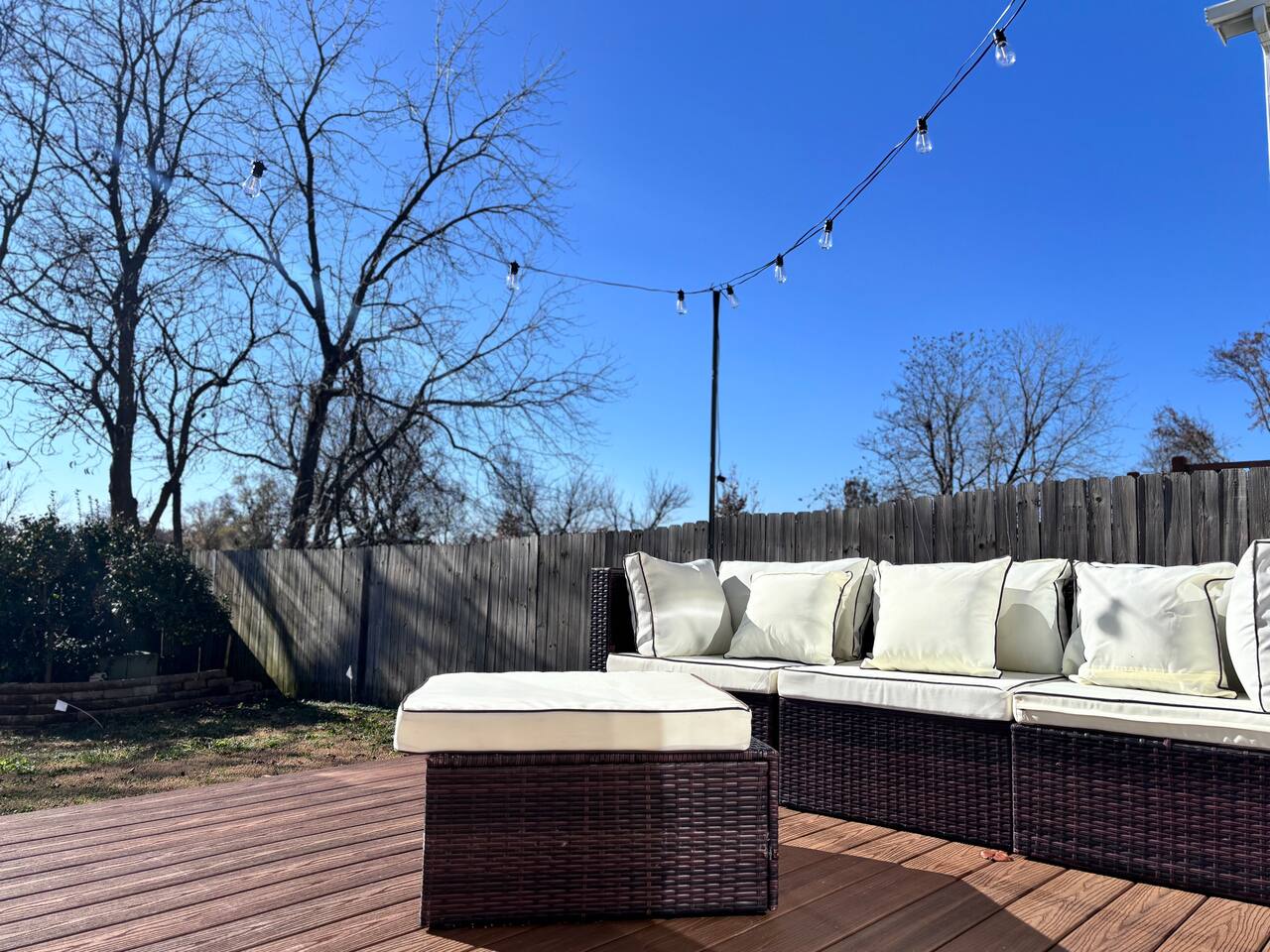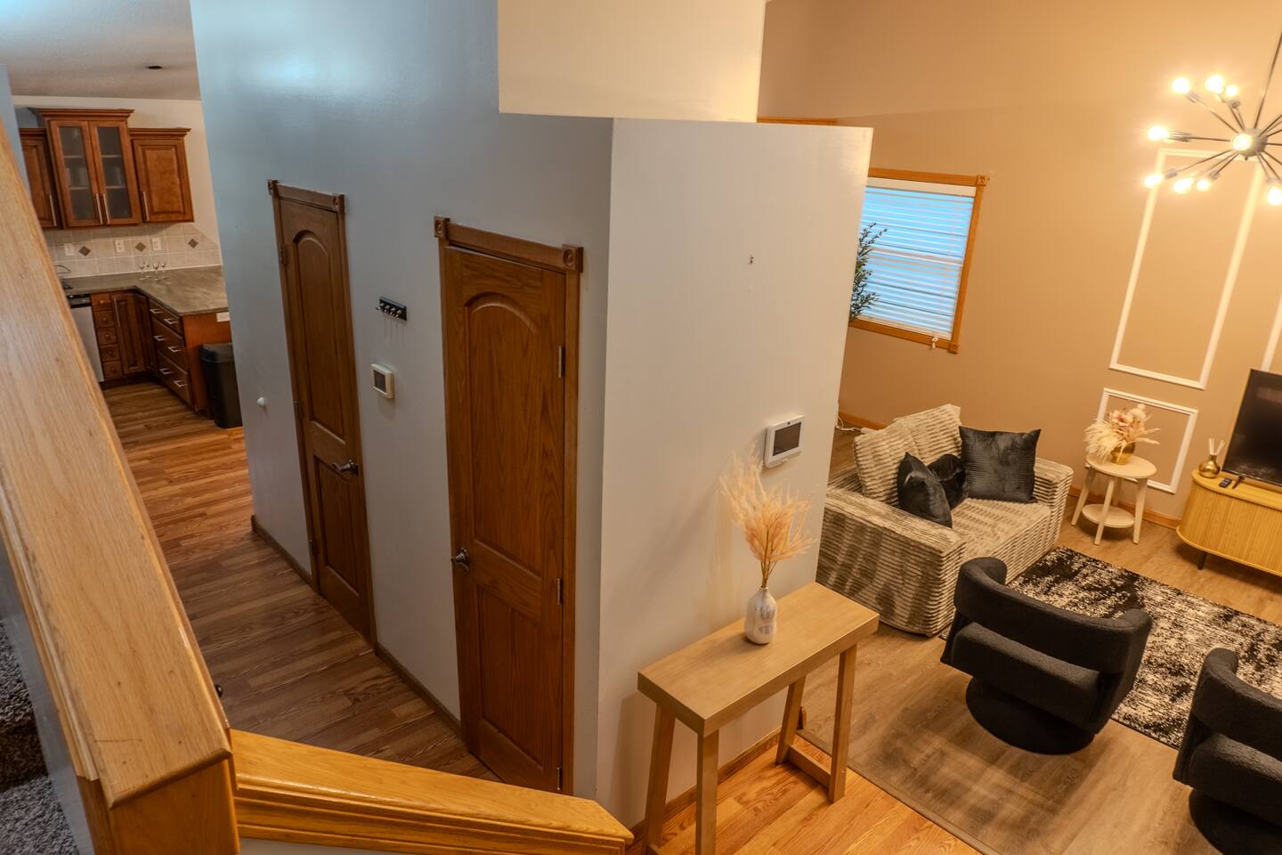 You’ll be staying in a 4-bed, 3.5-bath in east Wichita, with a backyard that looks right out onto Harrison Park. It’s a place to relax, whether you’re here with family, friends, or for work. Three levels: a main floor, a second floor upstairs, and a basement. There are stairs between all levels. You’ll be in a quiet residential area with a peaceful park view from the deck, but still close to everything. Kellogg, K-96 are only a short drive away, so getting around Wichita is simple and quick.