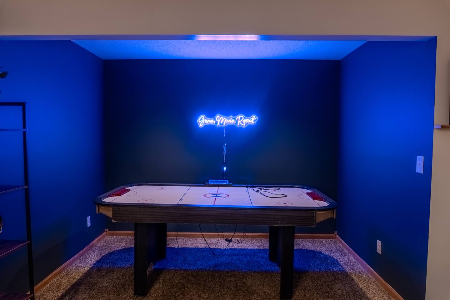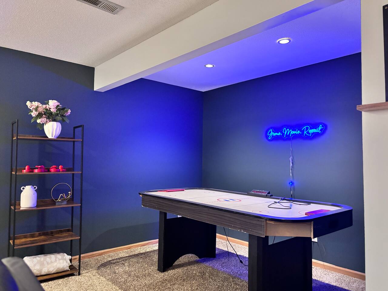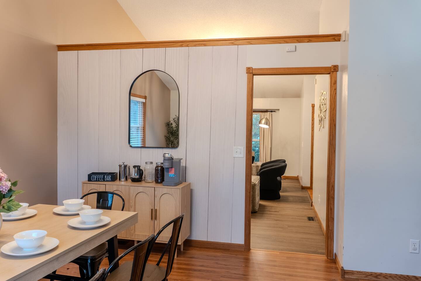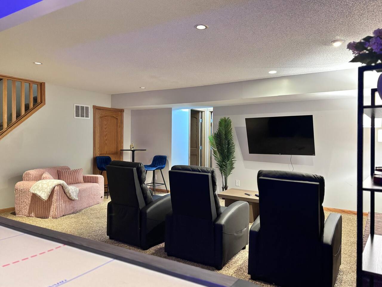 This spacious 4-bedroom, 3.5-bath home offers comfort and functionality with a beautiful view of Harrison Park right from the backyard. It’s ideal for families, business travelers, or groups who want space to relax in a quiet area while staying close to Wichita’s main roads and amenities. 🛏 Bedrooms Main Bedroom (upstairs) • King bed, sleeps 2 • En-suite full bathroom • Walk-in closet • Makeup station • Pack n Play Second Bedroom (upstairs) • King bed, sleeps 2 • Shared full bathroom nearby Third Bedroom (upstairs) • Bunk bed: Twin over full • Perfect for additional guests or children Fourth Bedroom (Basement) • Queen bed • Full bathroom 🛋 Living Spaces • Open main-floor living room with Smart TV • Dining area for 8 guests • Basement family room for games or relaxing 🍳 Kitchen • Fully stocked with cookware, utensils, and dinnerware • Coffee station: Keurig, kettle, and starter pods • Basic pantry items (oil, salt, pepper, etc.) • Dishwasher and full-size refrigerator 🎬 Basement • Downstairs movie room • Air Hockey Table • Laundry room with washer and dryer 🌿 Backyard & Deck • Deck with outdoor seating overlooking Harrison Park • Fully fenced yard with lawn space • Direct gate access to the park walking trail 🚗 Parking & Security • Driveway fits 2 vehicles, plus street parking for 1 • 2-car garage available • Ring doorbell camera for exterior security Please note that the street is moderately narrow — large trailers or oversized trucks are not recommended. Quiet residential area; parties or events are not permitted. This home provides all the essentials for a comfortable and convenient stay in east Wichita. Peaceful surroundings, direct park access, and easy connections to the city.