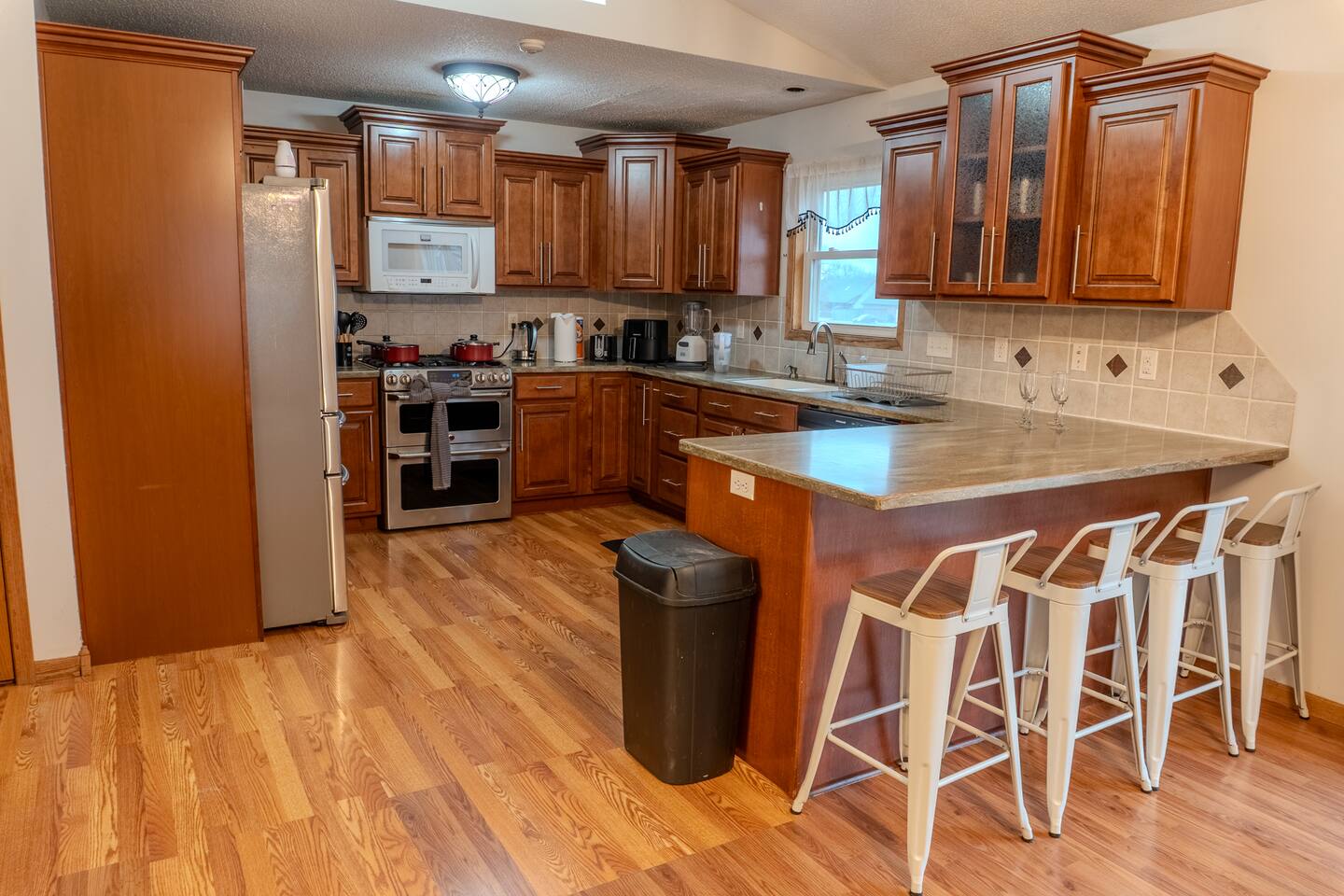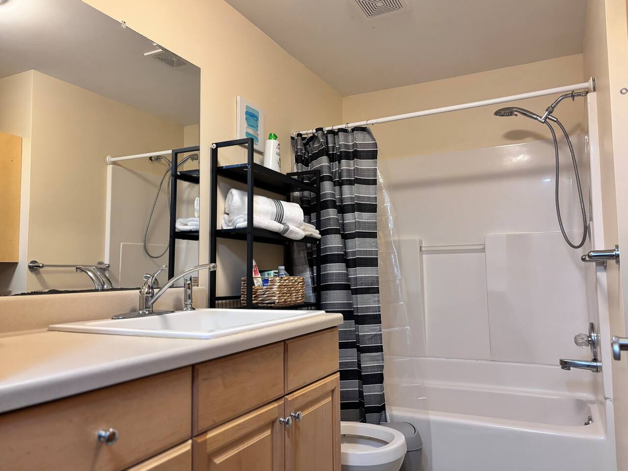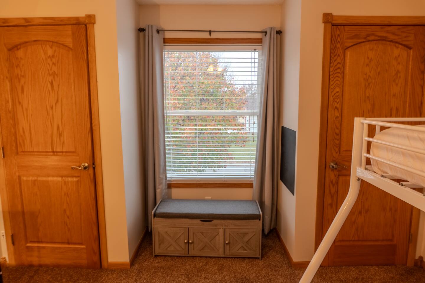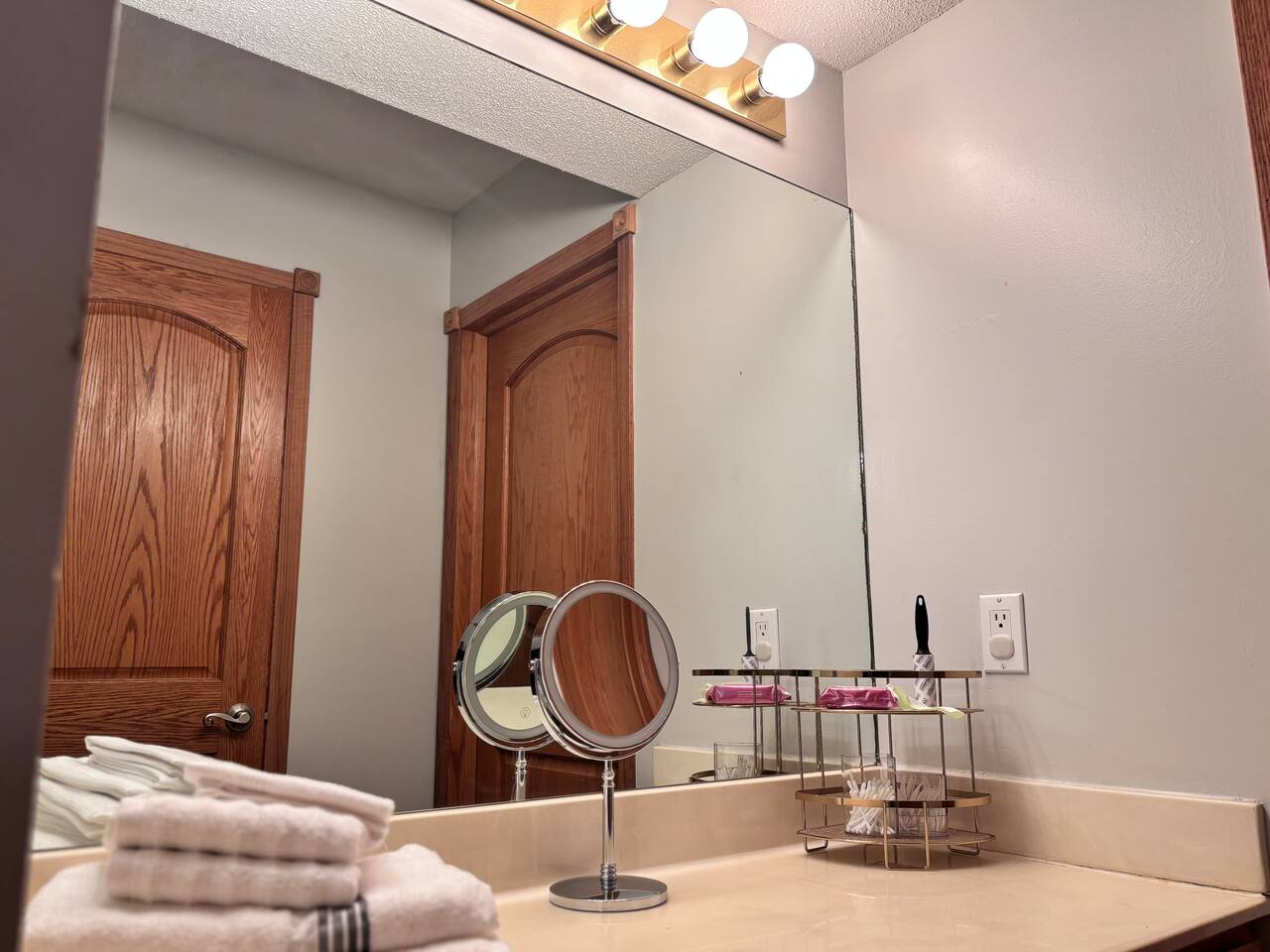 This spacious 4-bedroom, 3.5-bath home offers comfort and functionality with a beautiful view of Harrison Park right from the backyard. It’s ideal for families, business travelers, or groups who want space to relax in a quiet area while staying close to Wichita’s main roads and amenities. 🛏 Bedrooms Main Bedroom (upstairs) • King bed, sleeps 2 • En-suite full bathroom • Walk-in closet • Makeup station • Pack n Play Second Bedroom (upstairs) • King bed, sleeps 2 • Shared full bathroom nearby Third Bedroom (upstairs) • Bunk bed: Twin over full • Perfect for additional guests or children Fourth Bedroom (Basement) • Queen bed • Full bathroom 🛋 Living Spaces • Open main-floor living room with Smart TV • Dining area for 8 guests • Basement family room for games or relaxing 🍳 Kitchen • Fully stocked with cookware, utensils, and dinnerware • Coffee station: Keurig, kettle, and starter pods • Basic pantry items (oil, salt, pepper, etc.) • Dishwasher and full-size refrigerator 🎬 Basement • Downstairs movie room • Air Hockey Table • Laundry room with washer and dryer 🌿 Backyard & Deck • Deck with outdoor seating overlooking Harrison Park • Fully fenced yard with lawn space • Direct gate access to the park walking trail 🚗 Parking & Security • Driveway fits 2 vehicles, plus street parking for 1 • 2-car garage available • Ring doorbell camera for exterior security Please note that the street is moderately narrow — large trailers or oversized trucks are not recommended. Quiet residential area; parties or events are not permitted. This home provides all the essentials for a comfortable and convenient stay in east Wichita. Peaceful surroundings, direct park access, and easy connections to the city.