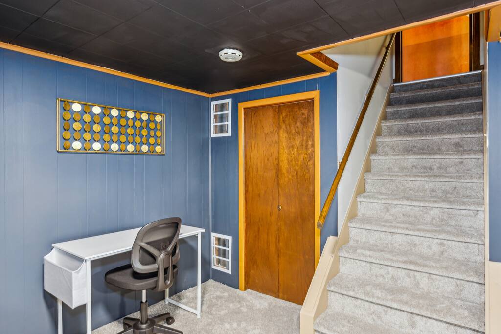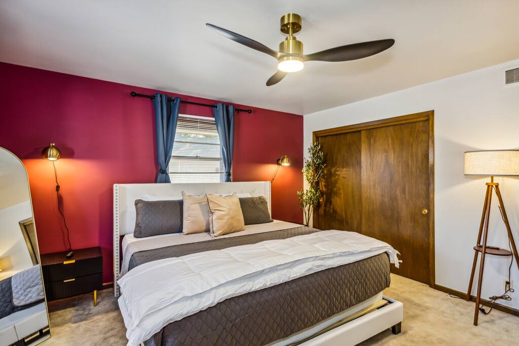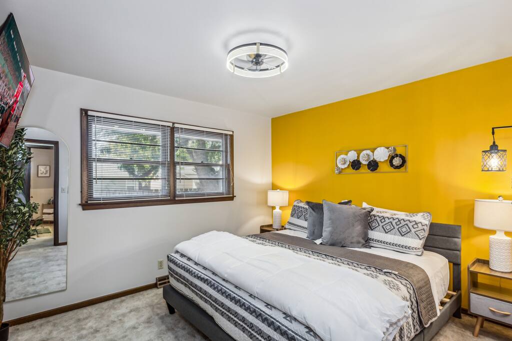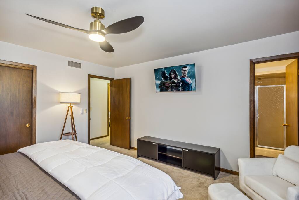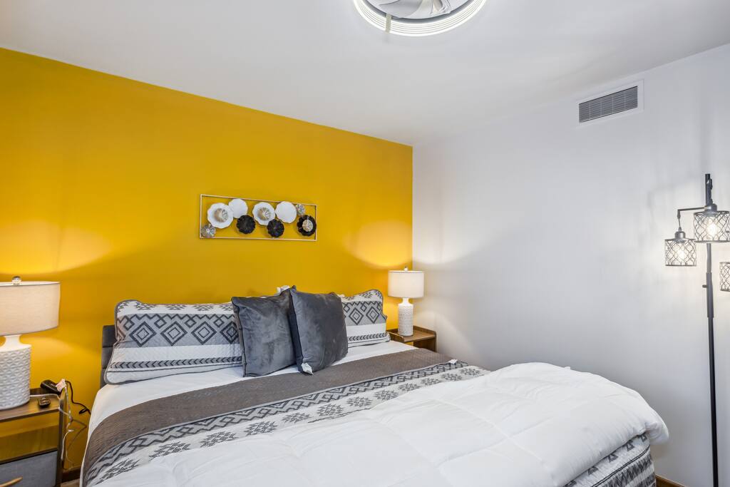 ★ Main Bedroom: Luxurious king-size bed for your relaxation. Accommodates two adults. A 43-inch TV equipped with streaming services. Full-body length mirror. Blackout blinds for a perfect sleep environment. ★ Second Bedroom: King-size bed that accommodates two adults. A 43-inch TV with full-motion mount for entertainment from any angle. ★ Third Bedroom: Cozy queen-size bed and bunk bed (full over twin). Perfect for families or a group of friends. ★ Living Room: Warmly designed for a cozy atmosphere. Features a 58-inch TV. Comfortable sectional sofa provides ample seating for relaxation and socializing. ★ Kitchen: Fully stocked with pans, cutlery, and knives for your culinary needs. Dedicated coffee station with a Keurig machine, hot water kettle, French press, and a selection of coffee and tea. Cooking essentials including oils, salt, and more. ★ On-site Laundry Facility: Washer and dryer with supplied laundry pods. ★ Backyard Oasis: Hot tub, fire pit, and relax seating environment. Text us for hot tub seasonal temperatures and availability. ★ Parking: Driveway parking for up to 4 vehicles ★ Dining Area: Elegant space for shared meals. Seating for 8. ★ Security Cameras: A Ring camera at the entrance is installed for your safety, the property, and the neighborhood. ★ Movie Theater Room: Equipped with home theater seats and bean bags for the ultimate viewing experience. Home theater sound system and a 70-inch TV screen for cinematic nights. Dedicated workspace for convenience and productivity.