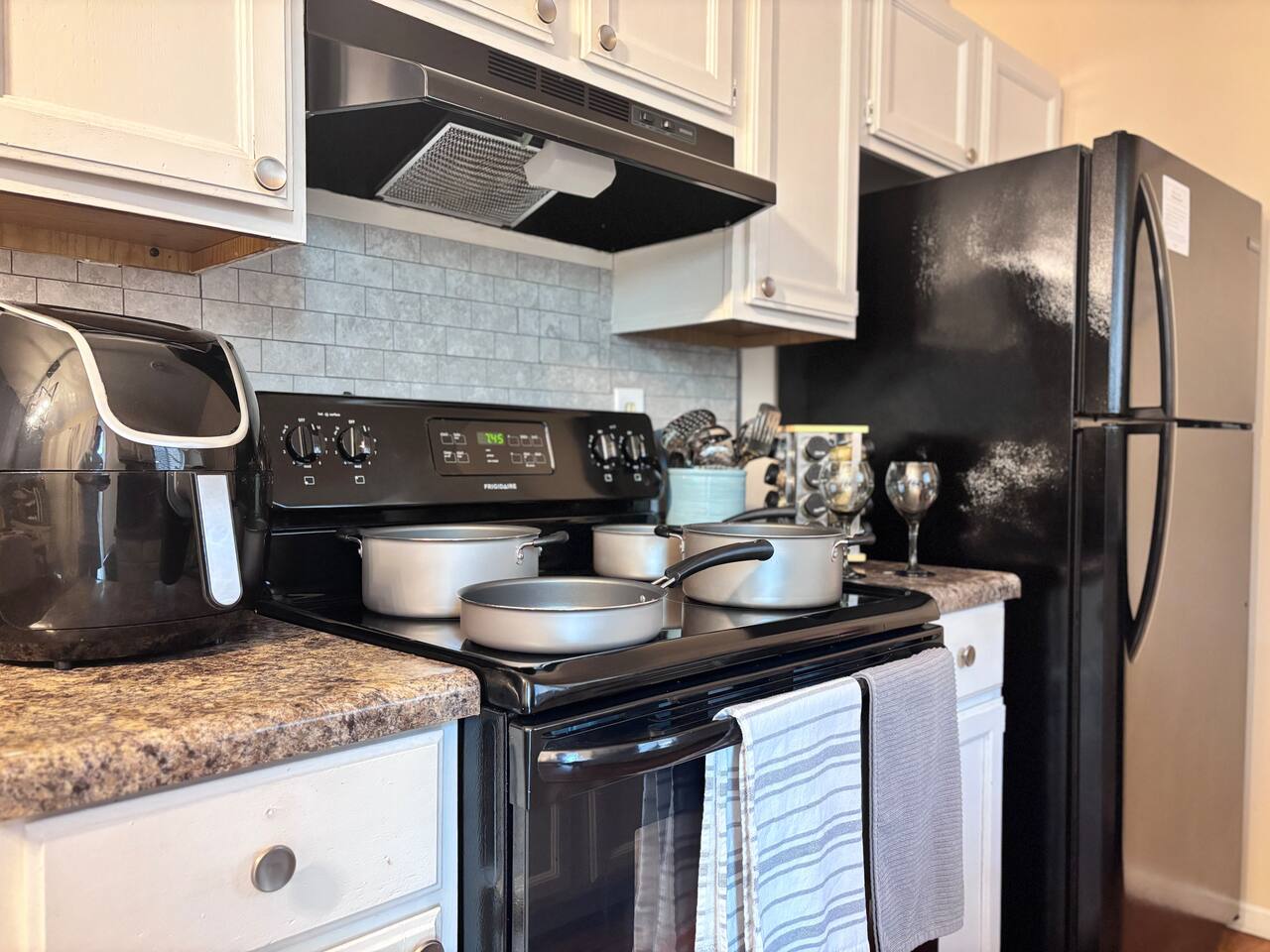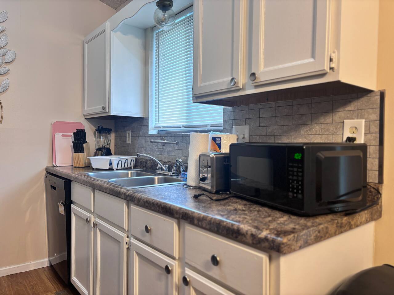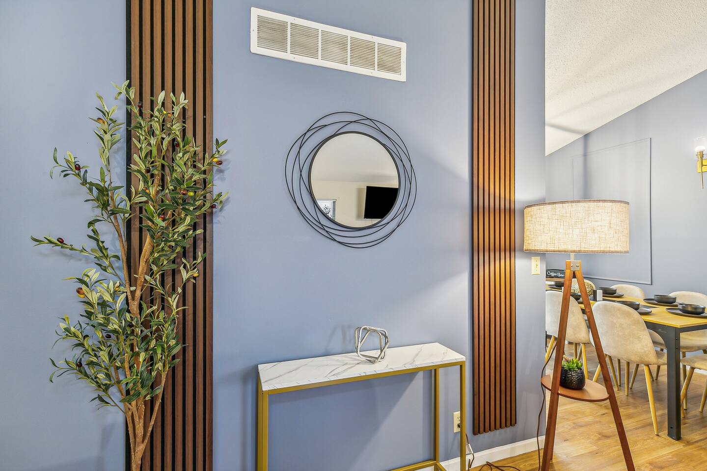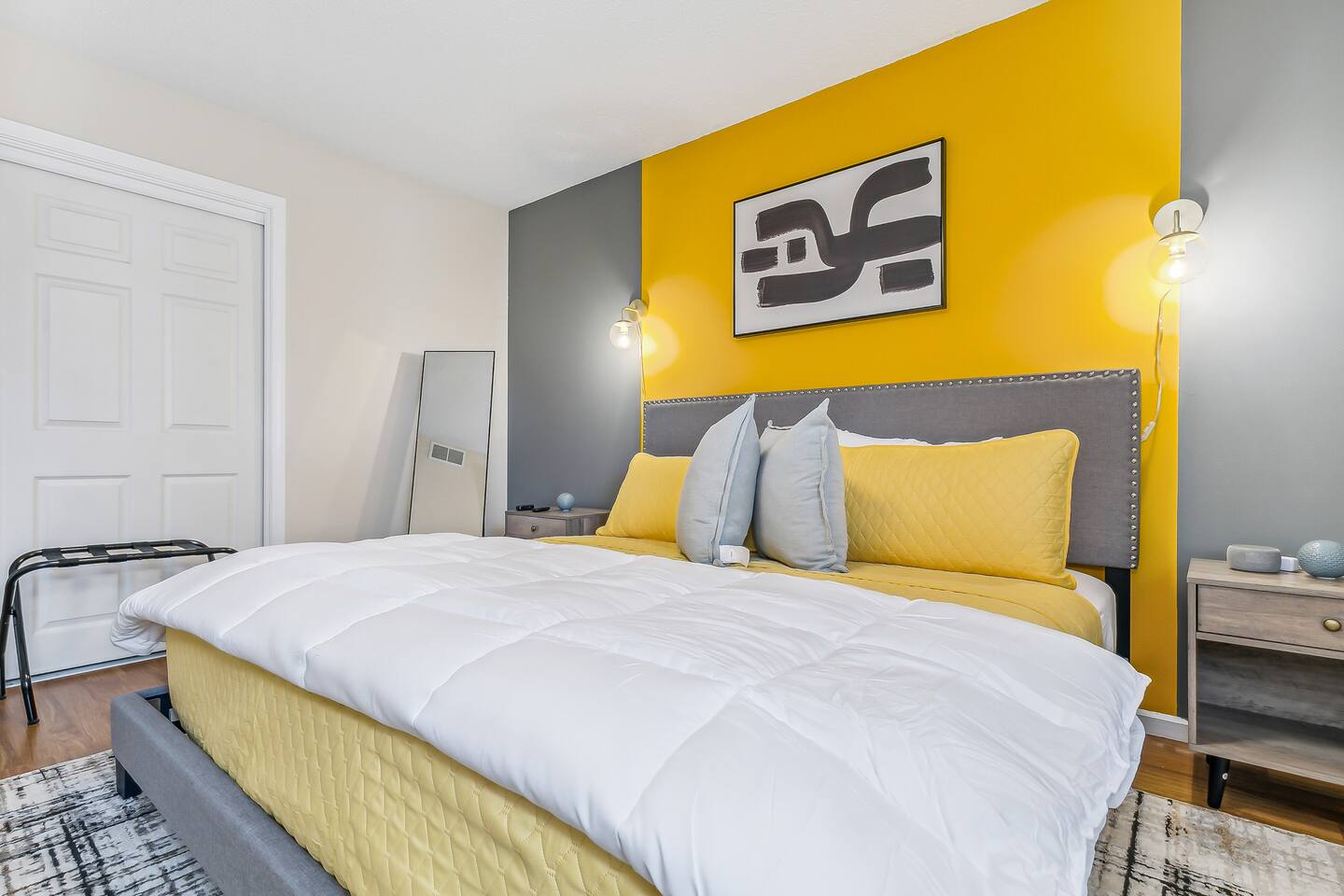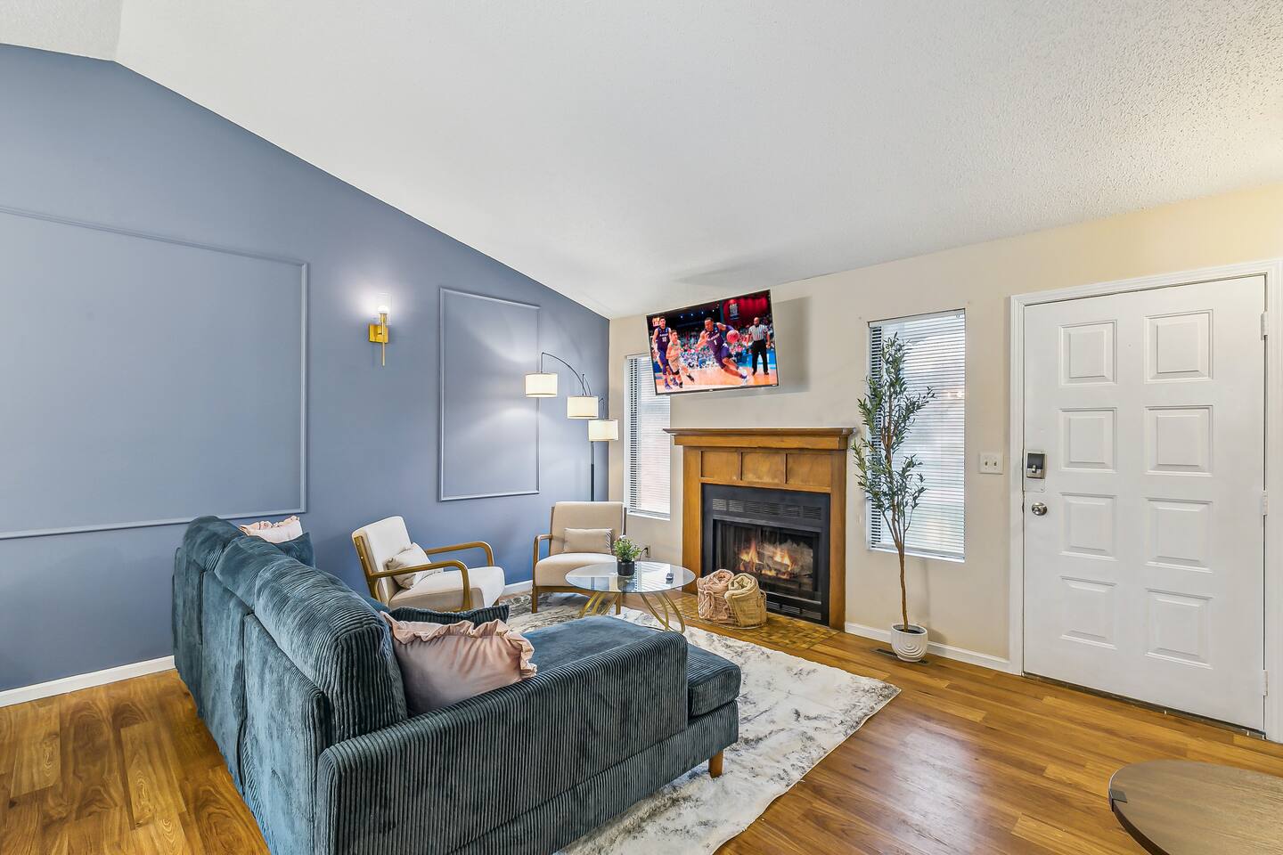 This home is perfect for families or groups, offering 3 bedrooms, entertainment areas, and a fully stocked kitchen. Relax indoors or enjoy the large backyard with a fire pit and grill. Remember this is one side of a duplex and completely private! 🛏 Bedrooms Main Bedroom • King bed, sleeps 2 • 40" Smart TV • Full-length mirror • Blackout blinds Second Bedroom • King bed • 40" TV with full-motion Third Bedroom • Queen bed + Full-over-Full bunk bed • Sleeps up to 4 • Desk and chair for workspace Movie Room • Foosball and air hockey table • 75" TV with theater seating 🛋 Living Spaces • Cozy living room with 50" TV • Dining area with seating for 8 💻 Workspace • Quiet spot with desk and fast Wi-Fi 🍳 Kitchen • Fully stocked with pans, cutlery, and knives • Coffee station: Keurig, kettle, French press, regular & decaf options • Basic cooking needs: oils, salt, etc 🌿 Backyard • Gazebo, fire pit, and grill • Playground for kids 🚗 Parking & Security • Driveway fits 4 cars • Ring camera at front door for security