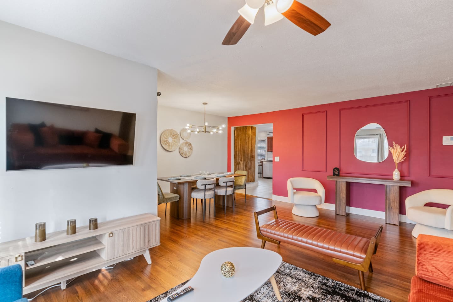 You’ll love this cozy and comfortable ranch style home (single level) in a central Wichita location, perfect for up to 8 guests. Whether you are visiting with family, friends, or for work, this home offers a relaxing and welcoming space. You are minutes from Central Ave. and close to WSU, making it easy to get around the city. Enjoy two king beds, two full bathrooms, and a private deck with outdoor seating. If you are looking for comfort, space, and a great location, this is the place for you.